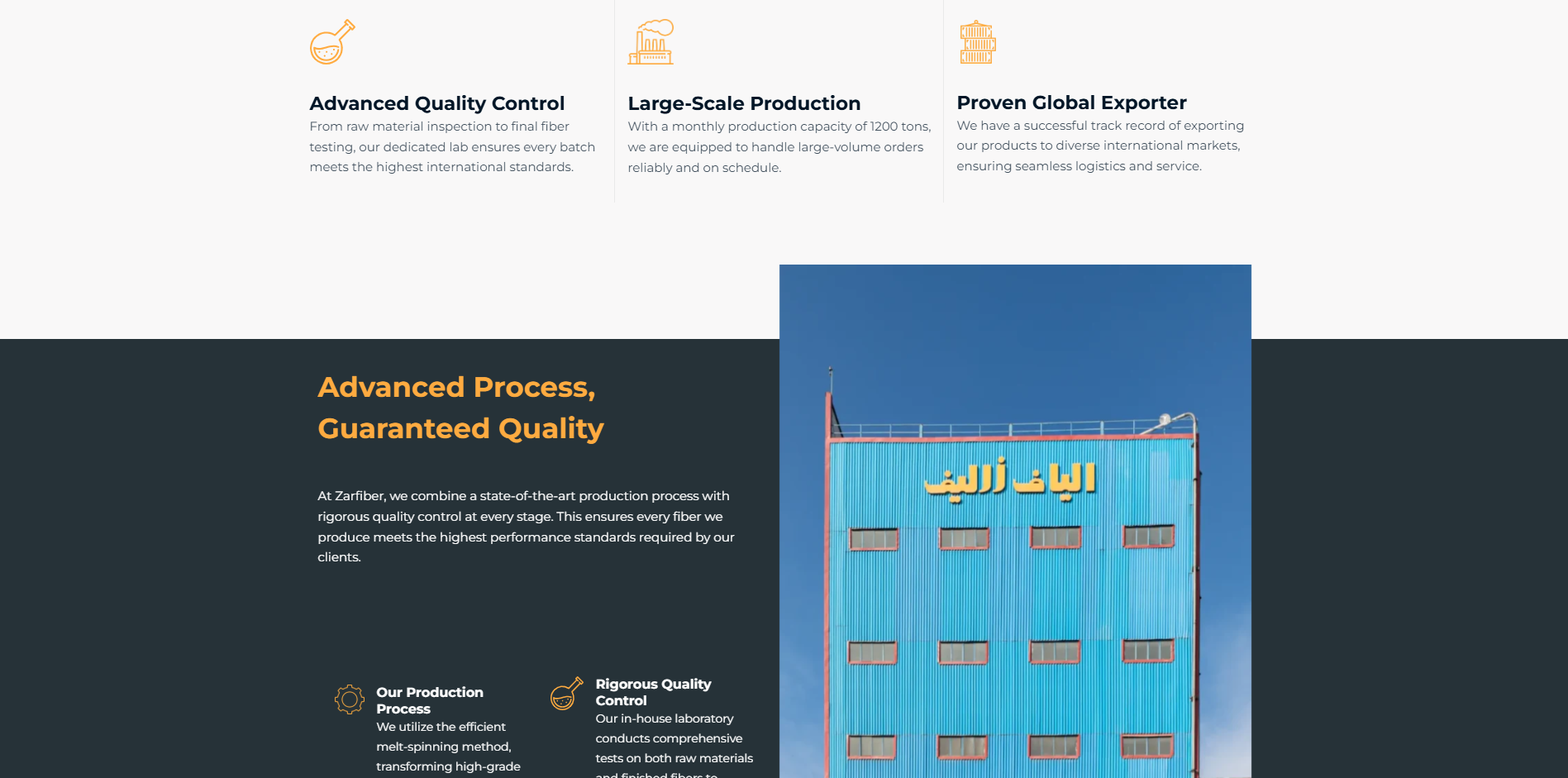 A high-performance B2B website built for credibility and conversion. The clean industrial design, intuitive navigation, and sharp product presentation highlight ZARFIBER’s global scale and quality standards — turning professional visitors into trusted business leads.